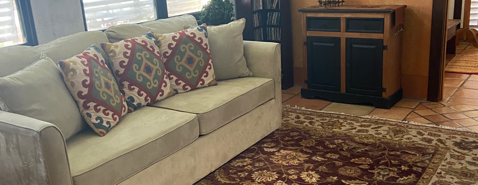 We then began by updating the floors. While the Spanish tile was lovely-it was not in the best condition. A warm-colored flooring was laid that complimented the existing cedar beams. The kitchen saw a major remodel with freshly painted cabinets, sea pearl quartzite and an intricate tile design. We brought back in Terracota tile in a modern way that feels fresh.
